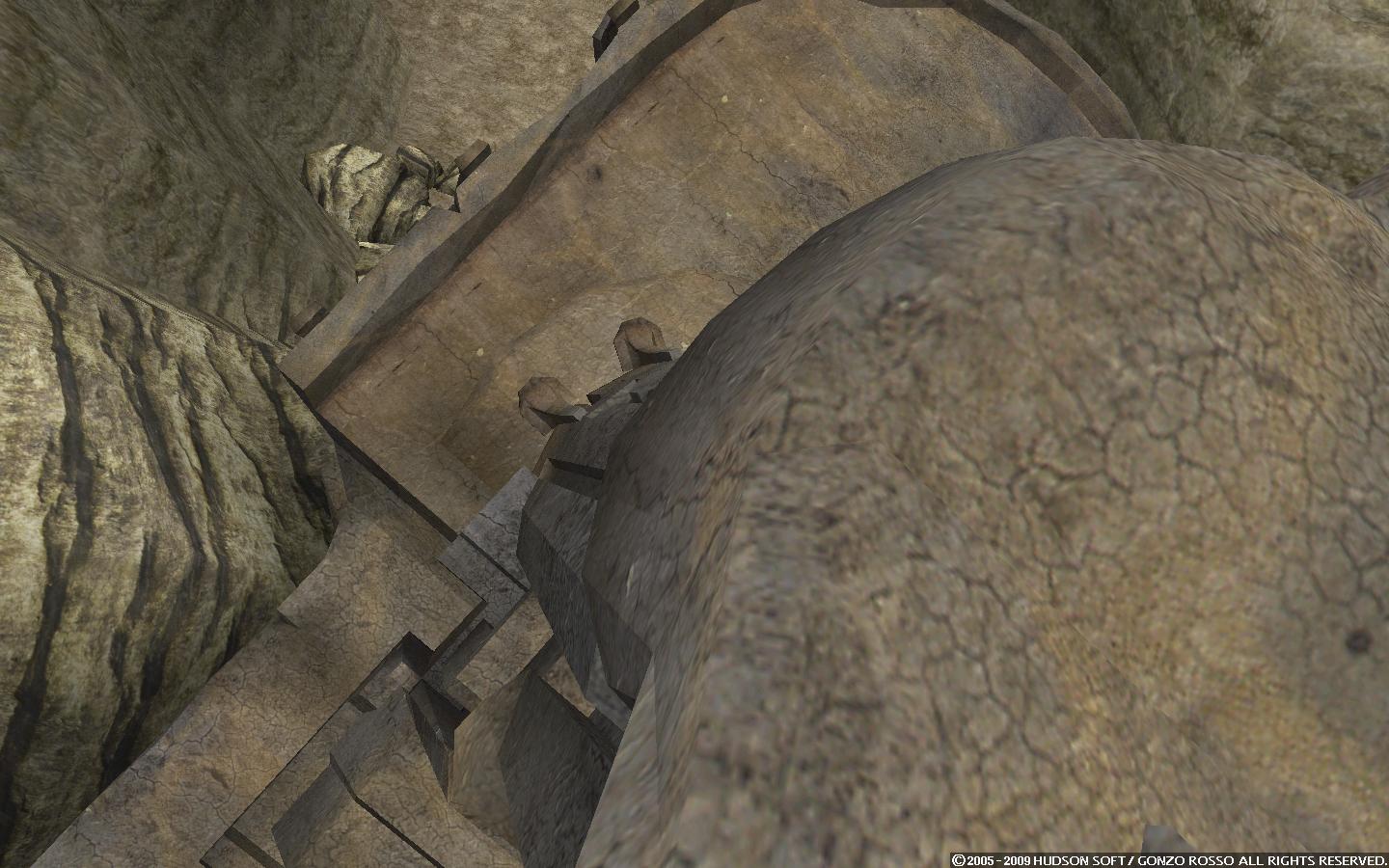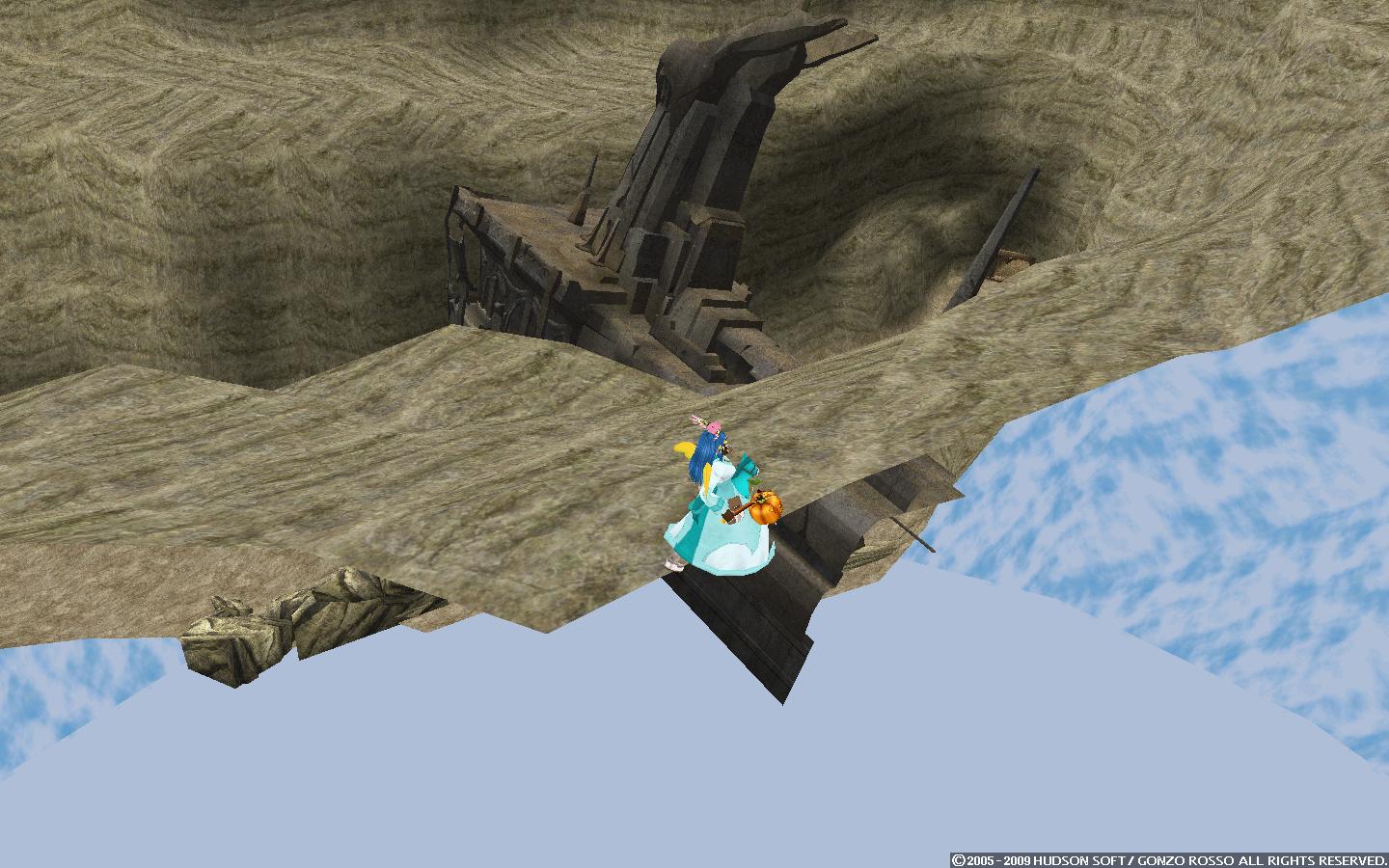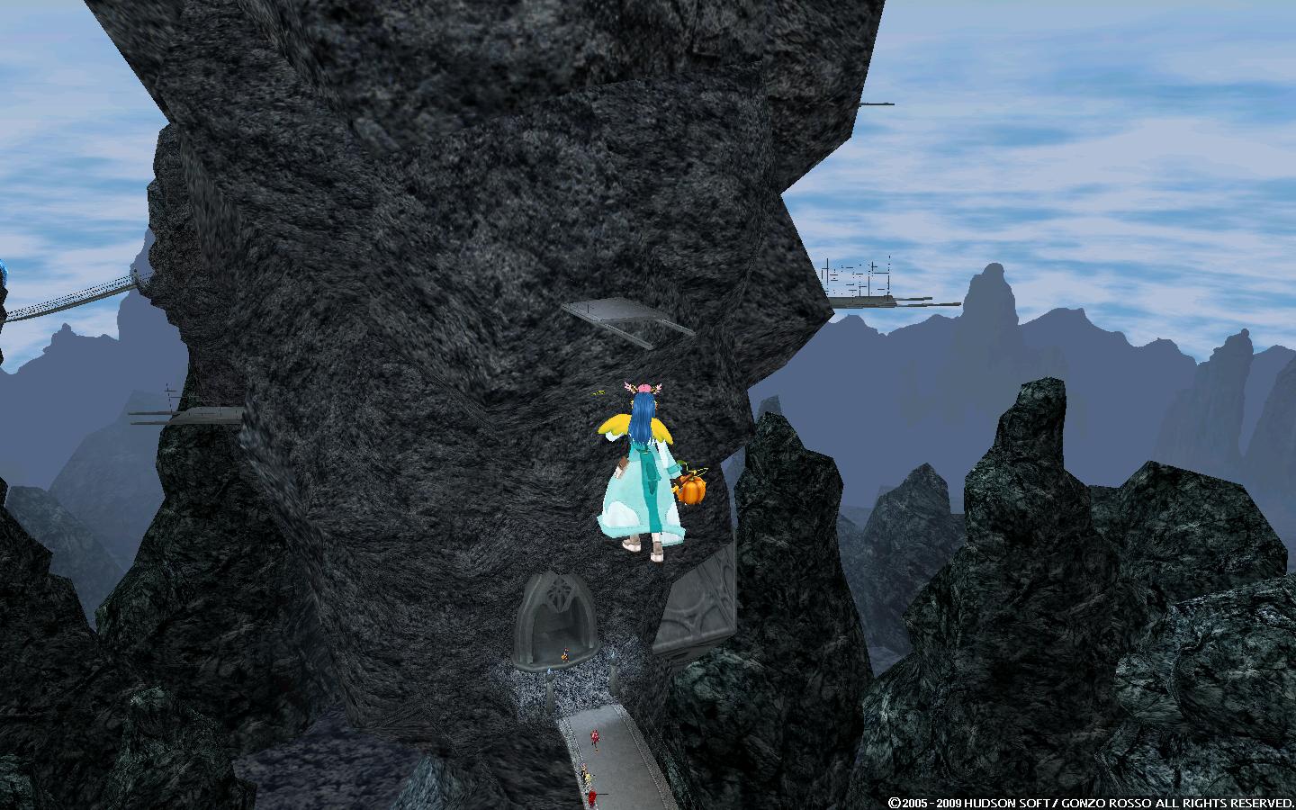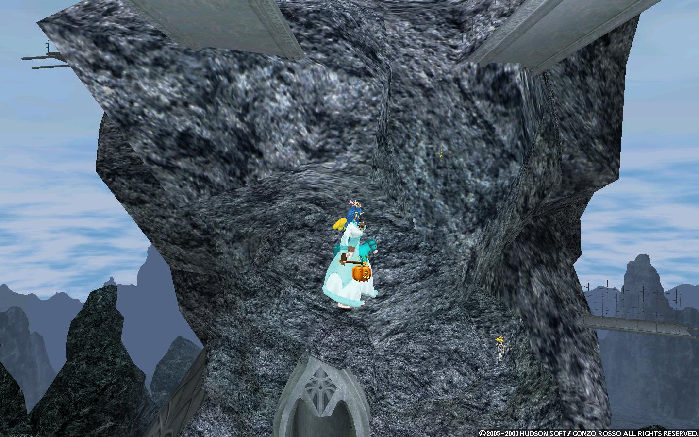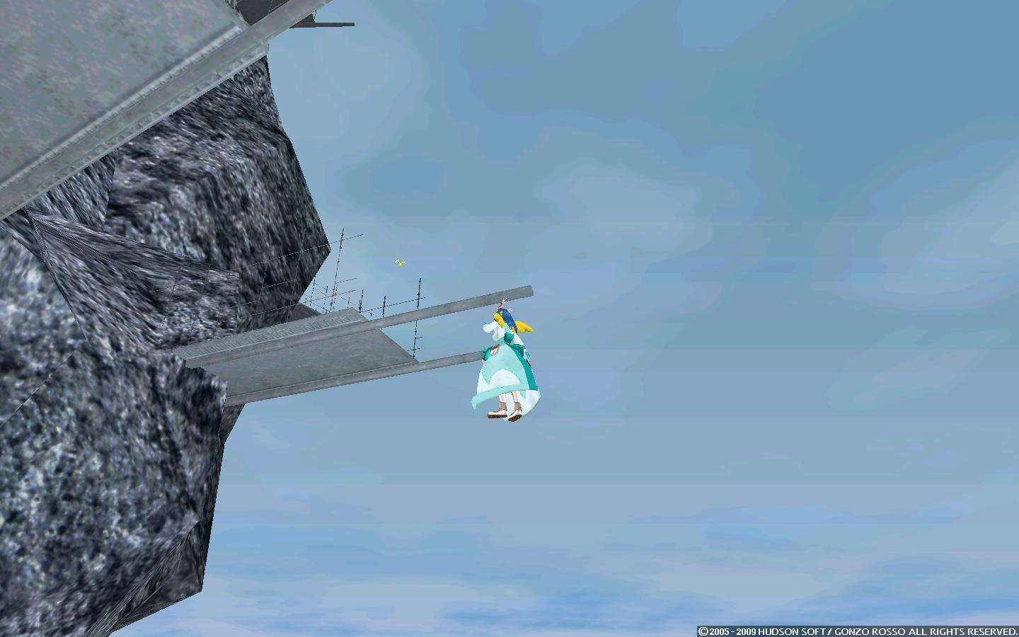 モラタワーの遥か下の地面(山とかはやっぱりグラだけで判定なしですり抜けたので)に