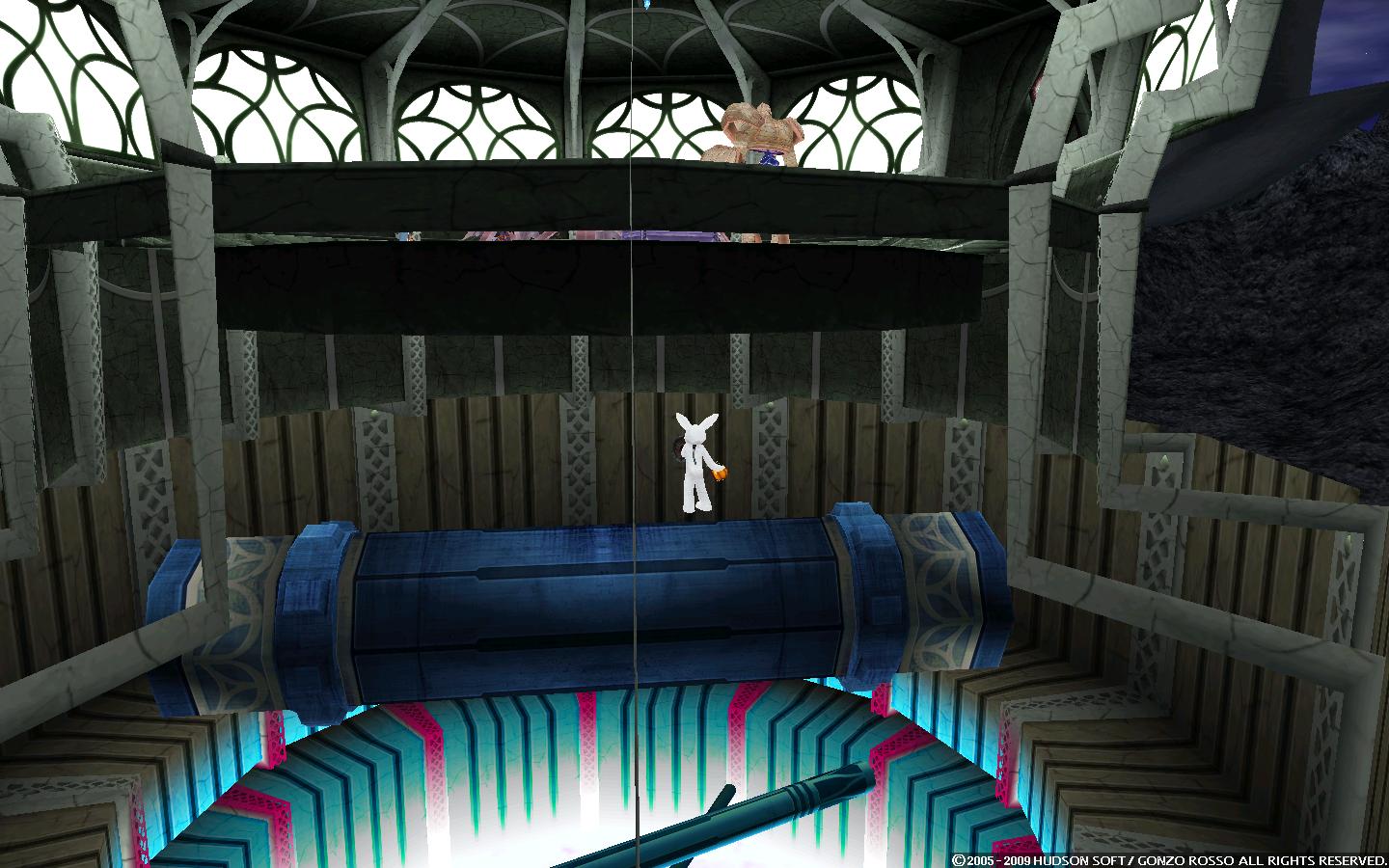 モラタワーは景色がきれいなので芋ジャンプ、と思ったけど透明壁で守られてて外に出れない。