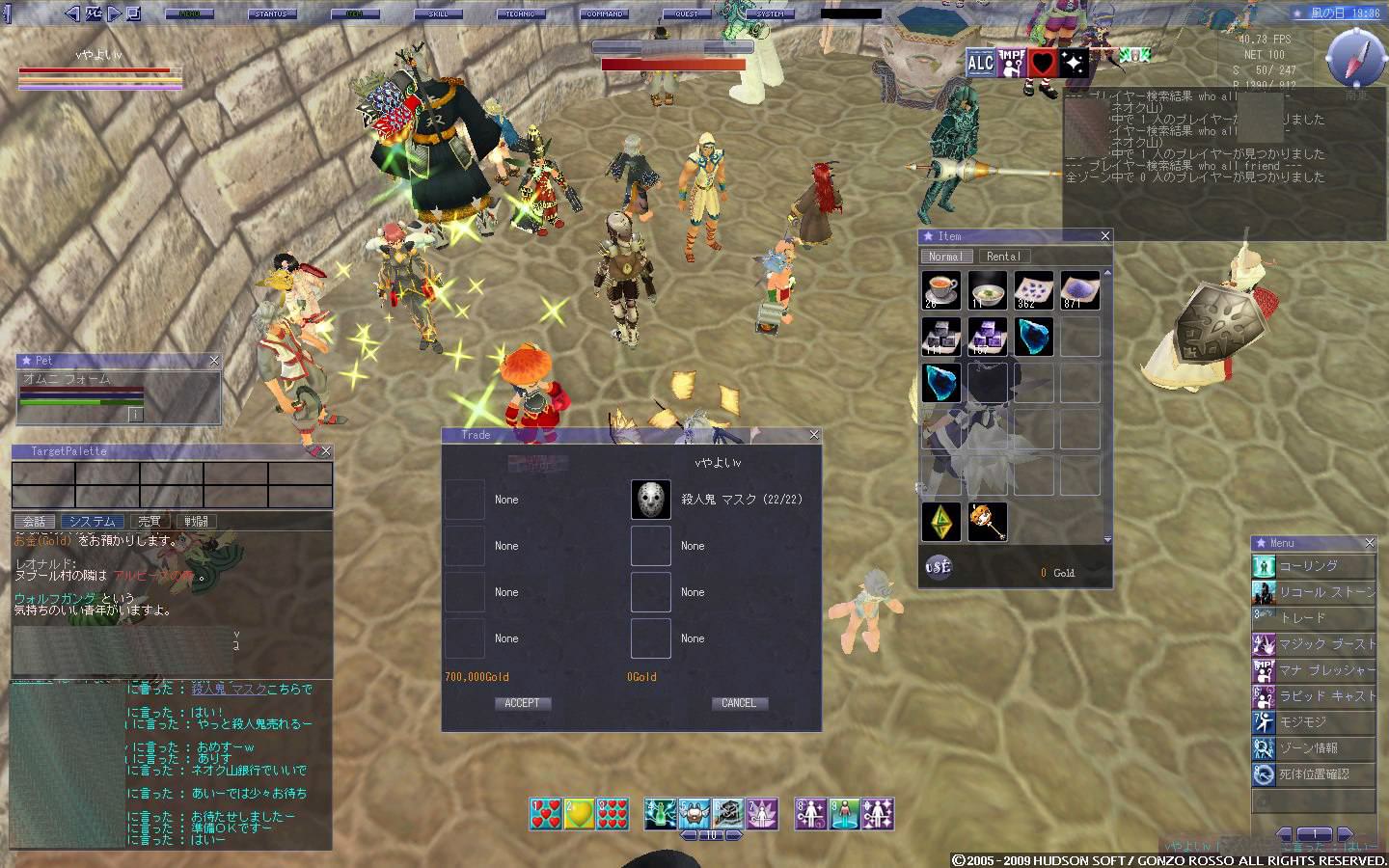 まずは、バハでの知り合いがいつか金がたまったらセレ装備がほしいといっていたので、