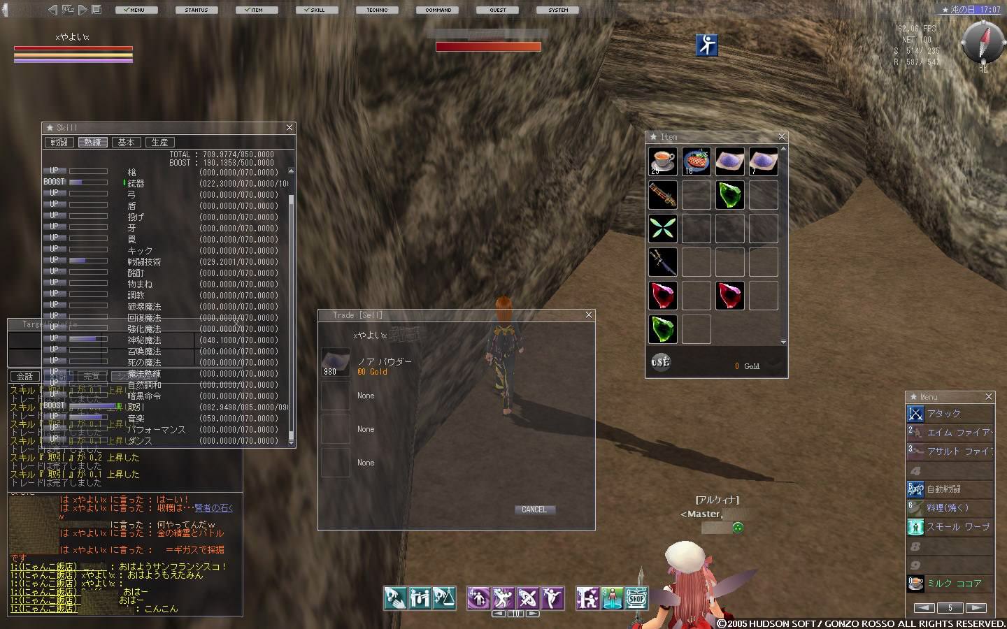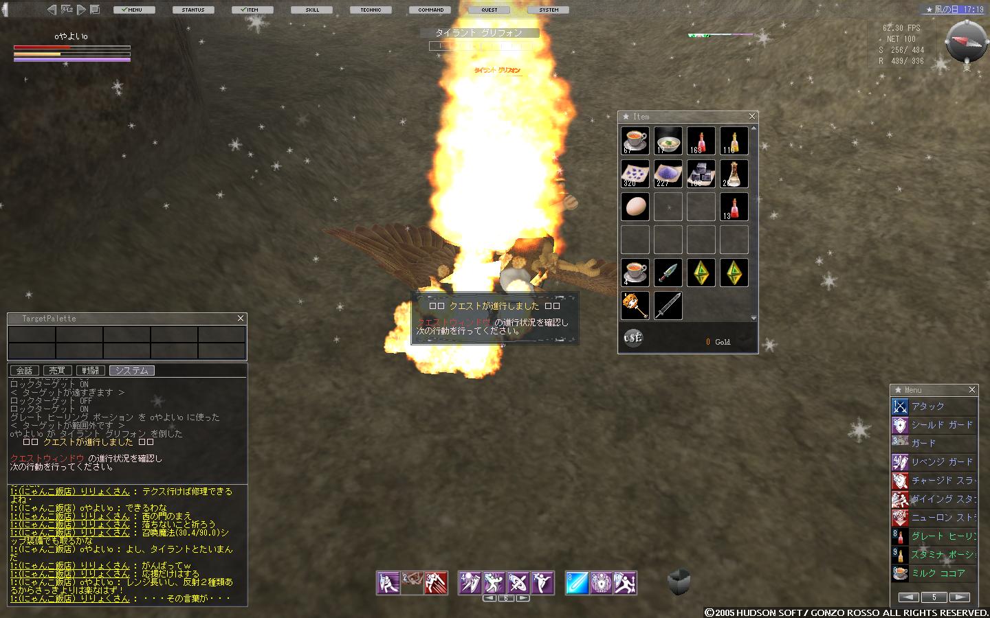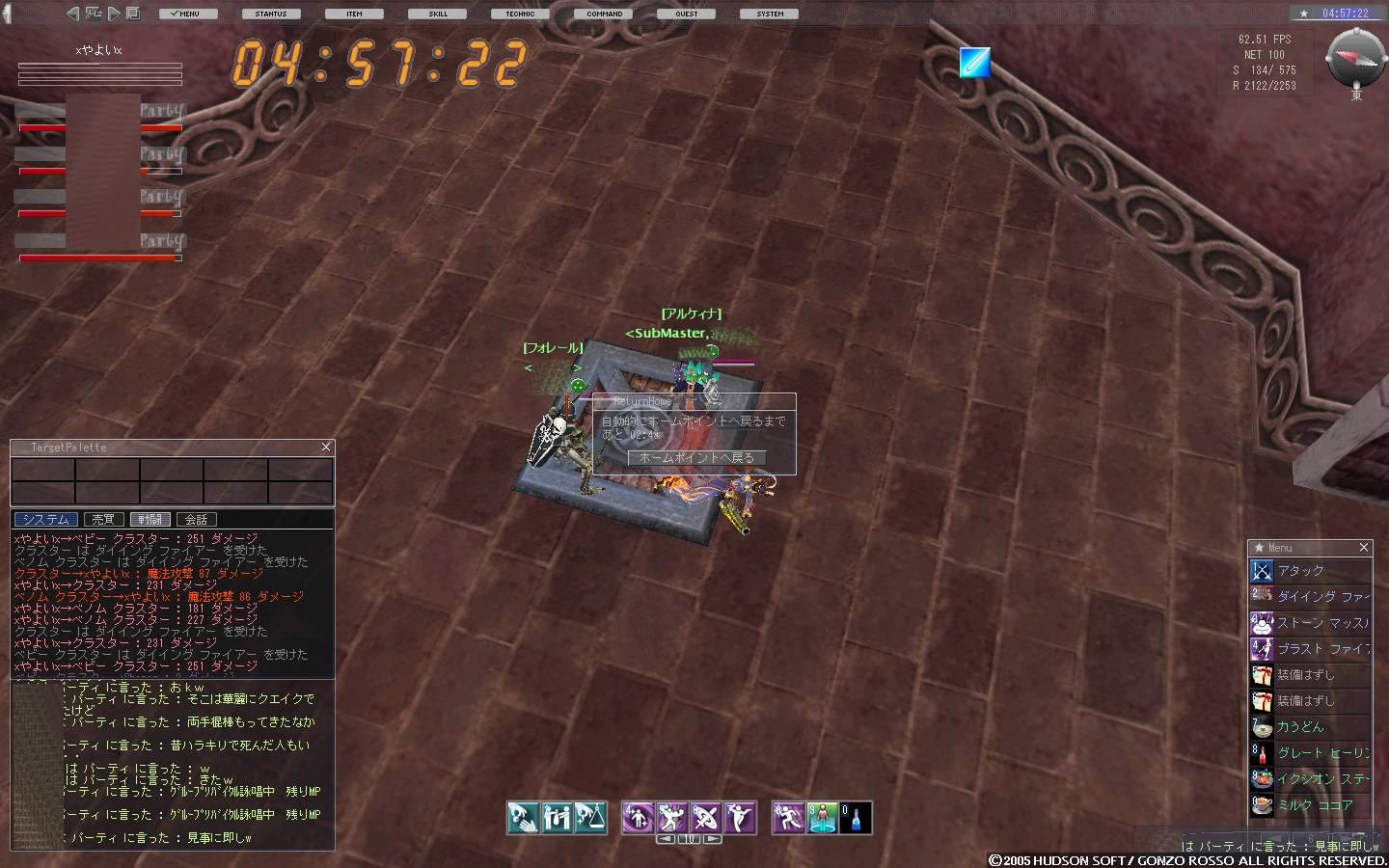 右下:ダイイングファイアーって範囲技で敵の数だけ反動ダメージがあるわけだが、じゃぁクラスター広場でやったらどうなる!?ってことでやってみた結果。