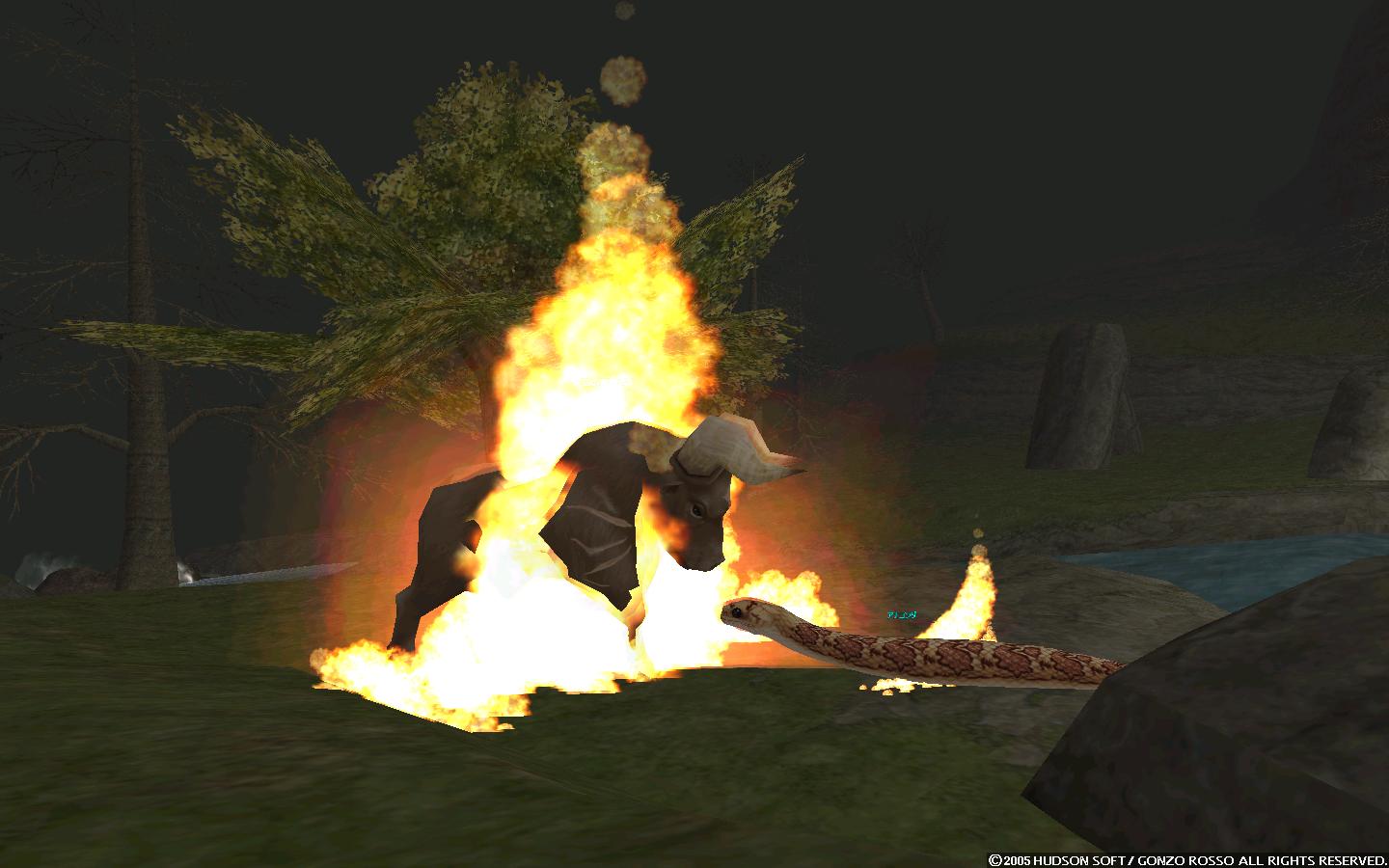 ちなみに何度か火牛がポップ地点より上の川で水浴びしてしまうバグがあった。