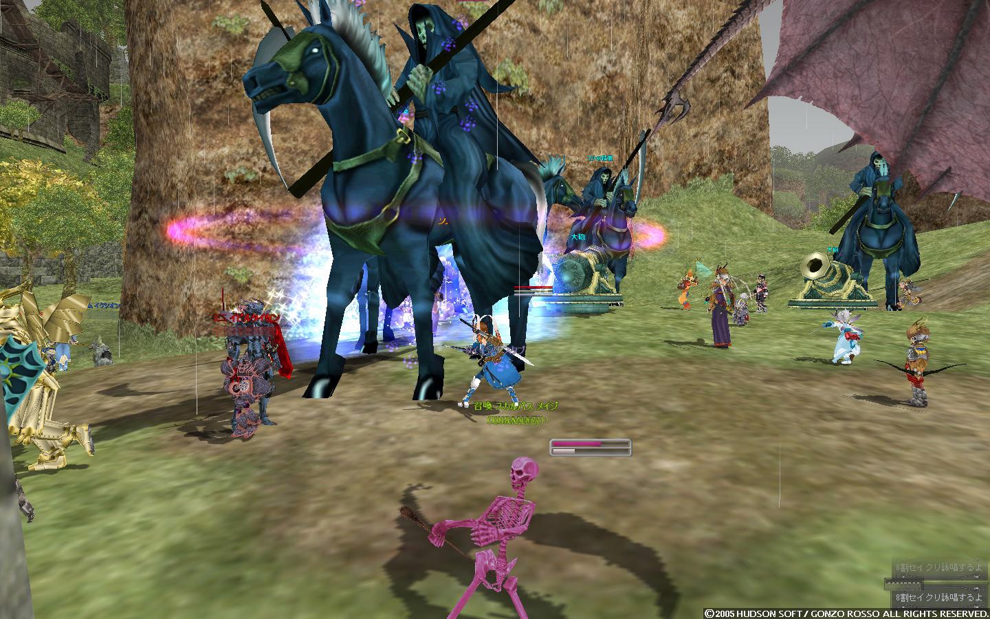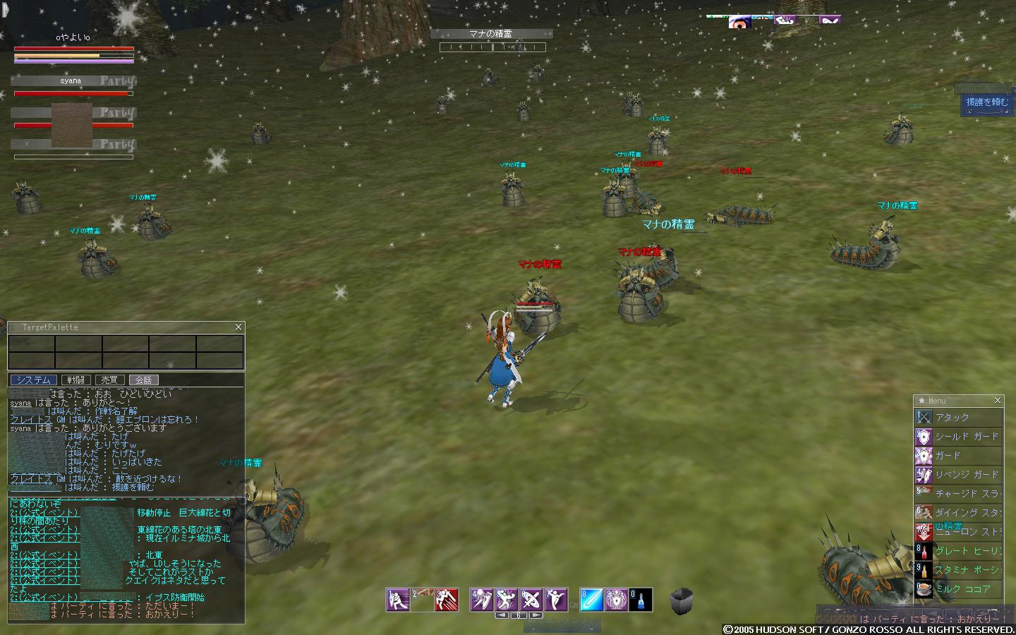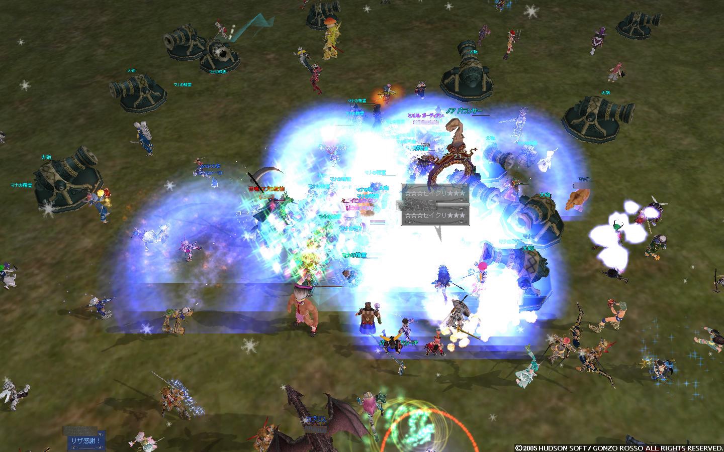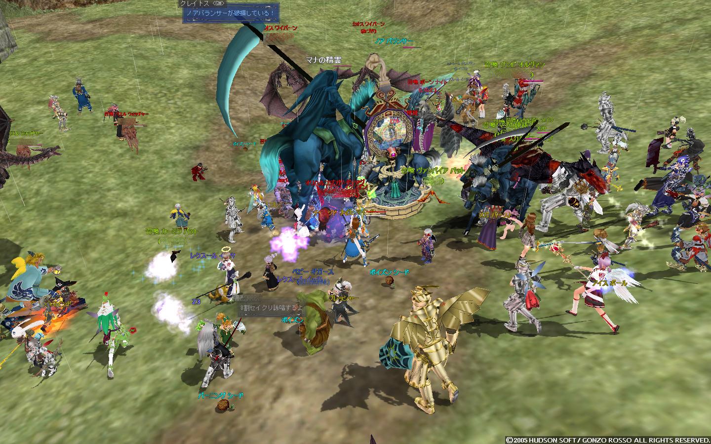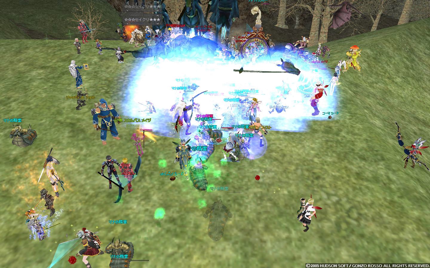 そこから左右に回って奥地に向かおうとすると、エルアンナイト白&黒が大量にいたり、劣化エゼイジアのジャイアントギガスがいたり、エルーカス(イベント時のマナの精霊と同種)がいたり、そして奥地にはエルーカスクィーンその他とりまきもろもろがいたりといった感じ。