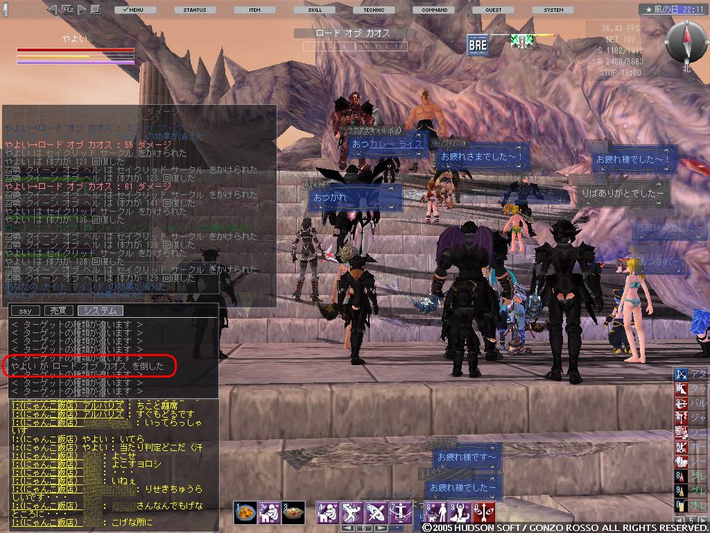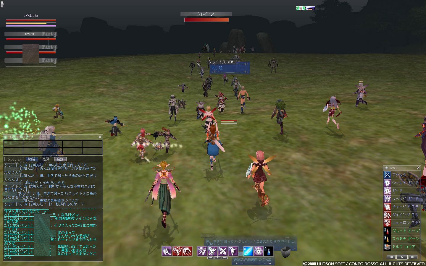 途中下忍を倒した人が魚のたたきのレシピ手に入れてshoutで誤爆したのでGMが作ってくれと。